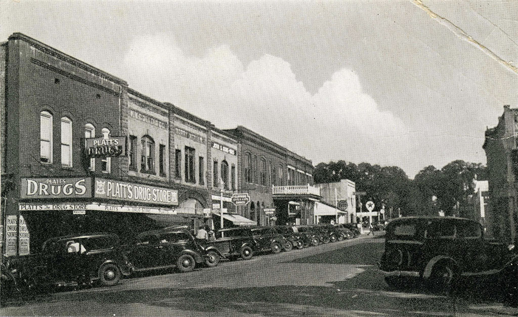 Conway High school and Main street Clemson University 1939