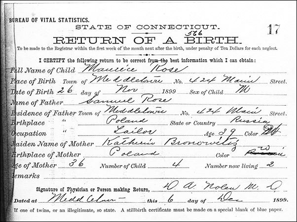 Family: Maurice was born in Middletown, Connecticut,