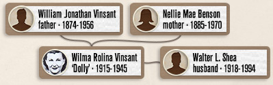 Wilma was the only child of William J. Vinsant & Nellie M. Benson. From her childhood she was nicknamed 'Dolly' because of her small stature.