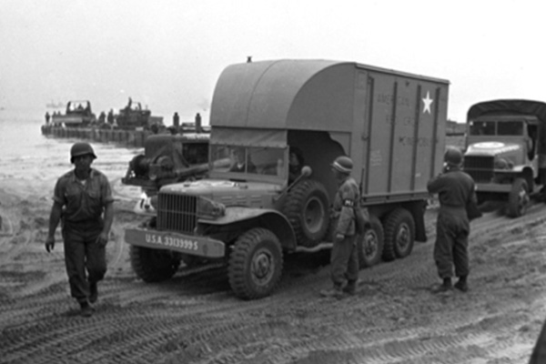 After the invasion of Normandy on June 6, 1944 (D-Day) ten Clubmobile Groups (each with specific letter were sent to the mainland and added to the various army corps. They would follow the troops. Clubmobile Group A landed on 16 July 1944 as the first one, on Utah Beach.