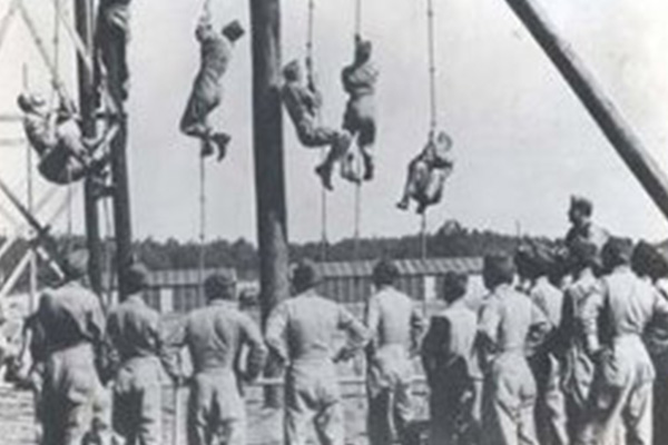 During week C the men were taught to pack their parachutes and the first jumps were made, first from 9 meters and then from 76 meters high. Most of the men dropped out in weeks A and B, but the jumps made in week C also led to further 'victims'.