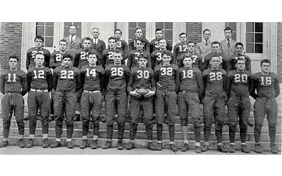 Photo from a yearbook of 1936. Vinnie Utz stands in the football team