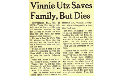 Newspaper article about the death of Vinnie Utz